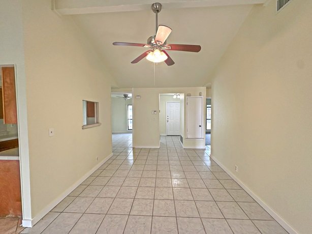 Single story; 3 bedrooms, 2 baths, 2 car garage. Fireplace in living room; formal dining area and eat-in kitchen. Wood laminate, vinyl, Ceramic Tile. Master bath has a beautiful tiled shower; double vanity. There is an additional room added on that can be a fourth bedroom, home office, or exercise room. Laundry room with pantry shelves. Mature trees. Only a short drive to Fort Sam Houston and Randolph military bases.